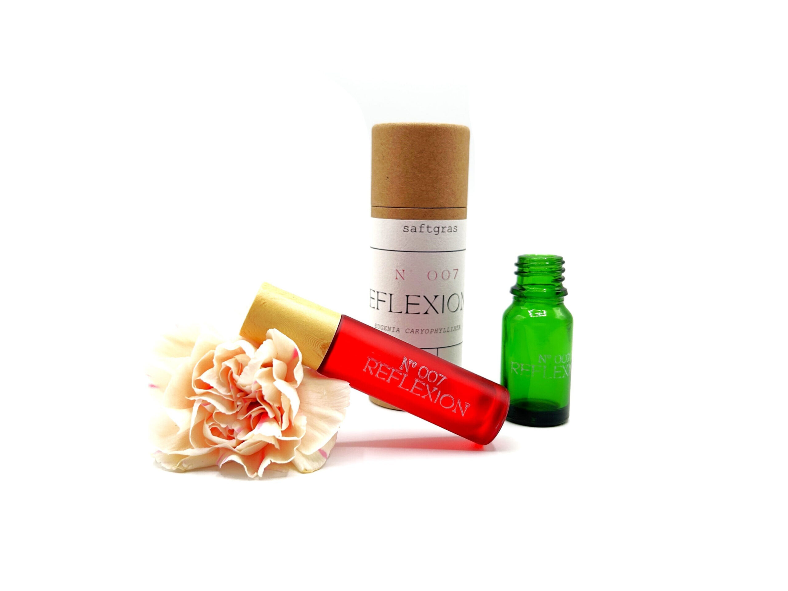 saftgras Reflexion ist 100% naturreines Öl aus Tanzania und wird als Roll on zur besseren Hautverträglichkeit mit Aprikosenkernöl bereichert.
